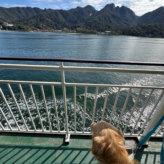 宮島へ行くフェリーはリードを着けていればわんこもデッキのみですが乗船OK🚢しかも無料!!