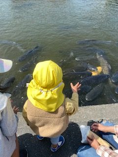 麩をちぎって投げる時に子供が池に落ちないかと、見てるこっちはヒヤヒヤです(^_^;)