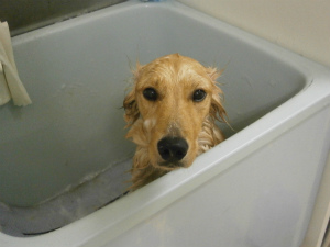 サニーはシャンプーは、とってもお利口さんでした・・・