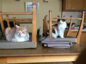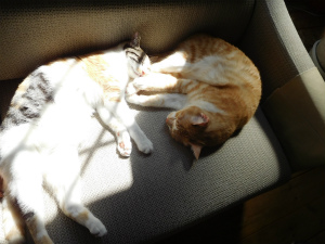 二人とも元ノラさんなので正式な誕生日はわかりません。でも、だいたい4月生まれなんですよ。先住猫のギャオスは4月1日にしてたのですが、4月1日が娘の誕生日になってしまったので、一緒じゃまずいだろうってことで・・・