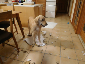 雨で散歩にも行けないので、アイビーは少々退屈ぎみ!ストレス溜まってるのかな〜?