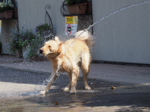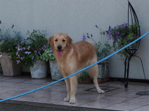 外に出ると暑いよ〜水浴びしたいよ〜ってことで、花の水やりついでに水浴びを!