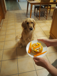 ところで、去る4月28日はアイビーの2歳の誕生日でした。ケーキを作ってお祝いをしました。
