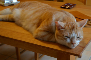 最近はトラオ君もアイビーが届かないところで行動範囲を広げています。トラオ君はアイビーに追いかけられても反撃せず逃げていますが、たまに逃げ切れずアイビーに覆いかぶされています。家族に「トラ、一発猫パンチ!」とか言われながら助けられています。トラオ君は、のんびり平和主義者です。