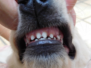 前歯(切歯)が乳歯から永久歯に生え変わってきました。犬の成長って早いですね〜
