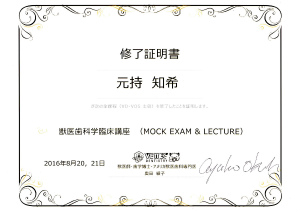 大変密度の濃い実習でとても有意義でした。そして、修了証明書を頂きました。